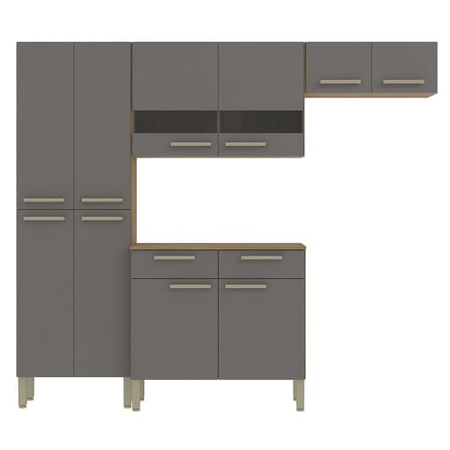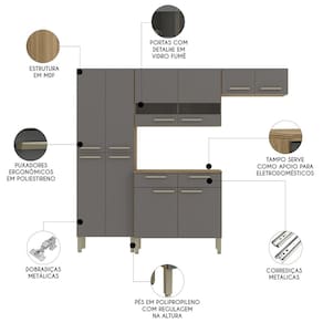 Cozinha Compacta Com Balcão 221cm Vivian Plus Freijó/Gris Z06 - Mpozenato