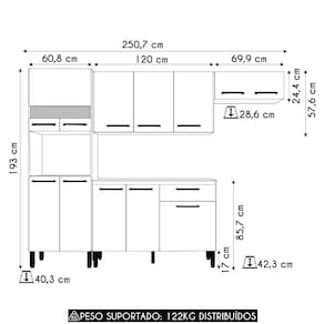 É fabricado em MDF de 12mm com acabamento em pintura UV, oferecendo máxima resistência. As dobradiças metálicas proporcionam uma abertura suave, enquanto os puxadores ergonômicos em poliestireno tornam o uso mais prático e confortável. A textura em cristalo na frente das portas confere um toque de sofisticação e destaque que eleva a beleza do ambiente. Os pés em plástico resistente de polipropileno são reguláveis, o que permite ajustar pequenos desníveis de piso e manter a estabilidade do Cozinha Compacta.