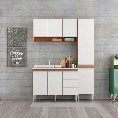 Cozinha Compacta Com Balcão Pia Sabrina 3pçs Mdp Menu Móveis Branco Avelã