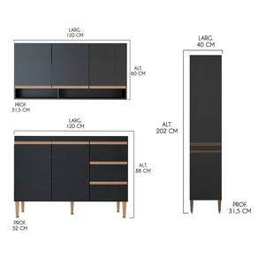 Balcao Pia para Cozinha Modulada Sabrina 120x52cm MDP Preto 0449 Menu Moveis