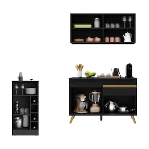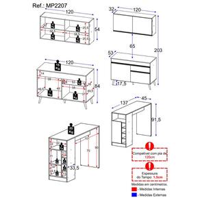 Dimensões do produto montado: Cozinha - Altura: 203cm | Largura: 120cm | Profundidade: 53cm Bancada/Mesa - Altura: 91,5cm | Largura: 137cm | Profundidade: 45cm *Você pode consultar as medidas detalhadas na imagem técnica do produto.