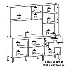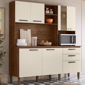 Perfeita para otimizar ambientes com praticidade e estilo, a Cozinha Compacta com tampo é produzida em MDP de 15mm. Possui 07 portas, sendo uma com vidro, e 02 gavetas, equipadas com dobradiças e corrediças telescópicas 100% metálicas. O design conta com nicho decorativo para pequenos objetos, prateleiras internas e um espaço funcional para micro-ondas. Os pés reguláveis e os puxadores são fabricados em plástico resistente, assegurando conforto no uso e estabilidade. O acabamento em pintura UV (fosco ou semibrilho) completa o visual moderno do móvel. Este móvel chegará em sua casa separado em 04 volumes.