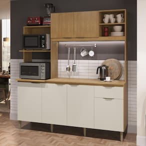 Transforme a sua cozinha em um espaço prático e cheio de charme com a Cozinha Compacta Dália. Combinando estilo com funcionalidade, conta com um amplo espaço de armazenamento e nichos específicos para micro-ondas e forno. Tudo o que você precisa, ao seu alcance.