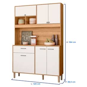 São 6 portas, 1 gaveta e prateleiras muito bem distribuídas com ótimo espaço, para colocar louças, talheres, utensílios e muito mais. Faça uso também do tampo, caso queira decorar, guardar potes de alimentos, enfim, tenha liberdade para usar como quiser!