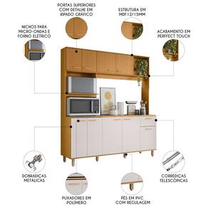 O Armário conta com Nicho Para Micro-ondas e forno elétrico, reunindo seus eletrodomésticos em um só lugar de maneira prática e acessível. Também possui um nicho decorativo, perfeito para exibir seus itens favoritos, trazendo ainda mais personalidade à sua cozinha. O tampo é um excelente apoio servindo como complemento para que tudo fique sempre ao alcance das mãos.