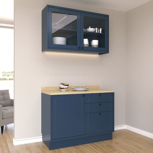 A Cozinha Compacta Com Vidro 2 Peças Sevilha é composta por peças essenciais para sua cozinha. Com estilo moderno e sofisticado, agrega beleza ao ambiente. Todos os puxadores são metálicos e pontuais e as dobradiças possuem amortecimento, de forma que proporcione resistência e funcionalidade ao produto. A Cozinha é produzida 100% em MDF, além de possuir corrediças telescópicas nas gavetas que proporcionam maior abertura e um deslizamento suave e silencioso. Acompanha o tampo em MDF. Acabamento da Prateleira: Pintura UV Escala de Brilho da Prateleira: Semi-Brilho Acabamento da Gaveta: Pintura Escala de Brilho da Gaveta: Semi-Brilho Material do Puxador da Gaveta: Metal Acabamento da Porta: Pintura UV Escala de Brilho da Porta: Semi-Brilho Material do Puxador da Porta: Metal Acabamento dos Pés: Pintura Acompanha Tampo: Sim Altura dos Pés: 13 cm Ambiente Principal: Cozinha Complexidade da Montagem: Alta: deve ser montado por um montador especializado Cor: Azul Órion / Carvalho Marrom Cor do Produto: Azul Órion / Carvalho Marrom Cor Interna: Azul Órion Escala de Brilho: Semi-Brilho Espessura do Material da Estrutura: 15 mm Espessura do Tampo: 30 mm Gaveta com Chave: Não Itens Inclusos: 1 Balcão 120cm , 1 Aéreo 120cm, 1 Tampo 120cm e 1 Manual de Montagem. Linha ou Coleção: Sevilha Manual de Montagem e Instalação: https://product-hub-prd.madeiramadeira.com.br/949917/documents/7e8acdeb-72fc-4326-ad48-6887ffb0c6bc2350989489017266794314309.pdf Material da Dobradiça/Corrediça da Porta: Metálica Material da Gaveta: MDF Material da Porta: MDF Material da Prateleira: MDF Material do Fundo: MDF Material do Tampo: MDF Material dos Pés: MDF Medida de cada item (A x L x P): Balcão: L 120cm x A 86,5cm x P 52cm; Aéreo: L 120cm x A 72cm x P 33,5cm; Tampo: L 120cm x A 10cm x P 52,5cm modular: Sim Necessita Montagem: Sim O Balcão Acompanha Pia: Não Origem do Produto: Nacional Pés Reguláveis: Não Peso: 92,75 kg Peso Máximo por Gaveta: 5 kg Peso Máximo por Prateleira: 5 kg Possui Pés: Rodapé Possui Portas: Sim Possui Prateleiras: Sim Possui recorte para Cooktop: Não Possui Rodízio: Não Possui Vidro: Sim Recomendações de Uso, Manutenção e Limpeza: Recomenda-se a utilização de pano seco. Sapatas Niveladoras: Sim Sistema de Montagem: Parafuso e Minifix Suporta Até (kg): 30 kg Tamanho Indicado da Pia: 120cm Tamanho Indicado do Tampo ou Pia: 120cm Tipo de Corrediça da Gaveta: Metálica Telescópica Tipo de Dobradiça da Porta: 35 mm Tipo de Puxador da Gaveta: Externo Tipo de Puxador da Porta: Externo