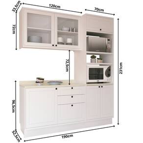 A Cozinha Compacta Com Vidro 3 Peças Sevilha é composta por peças essenciais para sua cozinha. Com estilo moderno e sofisticado, agrega beleza ao ambiente. Todos os puxadores são metálicos e pontuais e as dobradiças possuem amortecimento, de forma que proporcione resistência e funcionalidade ao produto. A Cozinha é produzida 100% em MDF, além de possuir corrediças telescópicas nas gavetas que proporcionam maior abertura e um deslizamento suave e silencioso. Acompanha o tampo em MDF. Acabamento da Prateleira: Pintura UV Escala de Brilho da Prateleira: Semi-Brilho Acabamento da Gaveta: Pintura Escala de Brilho da Gaveta: Semi-Brilho Material do Puxador da Gaveta: Metal Acabamento da Porta: Pintura UV Escala de Brilho da Porta: Semi-Brilho Material do Puxador da Porta: Metal Acabamento dos Pés: Pintura Acompanha Tampo: Sim Altura dos Pés: 13 cm Ambiente Principal: Cozinha Complexidade da Montagem: Alta: deve ser montado por um montador especializado Cor: Branco Ártico /Cinza Argila Cor do Produto: Branco Ártico /Cinza Argila Cor Interna: Branco Ártico Escala de Brilho: Semi-Brilho Espessura do Material da Estrutura: 15 mm Espessura do Tampo: 30 mm Gaveta com Chave: Não Itens Inclusos: 1 Balcão 120cm , 1 Aéreo 120cm, 1 Torre Quente 70cm, 1 Tampo 120cm e 1 Manual de Montagem. Linha ou Coleção: Sevilha Manual de Montagem e Instalação: https://product-hub-prd.madeiramadeira.com.br/950505/documents/d0be6045-665a-4475-902a-8324dfec9e362354570489017267555611406.pdf Material da Dobradiça/Corrediça da Porta: Metálica Material da Gaveta: MDF Material da Porta: MDF Material da Prateleira: MDF Material do Fundo: MDF Material do Tampo: MDF Material dos Pés: MDF Medida de cada item (A x L x P): Balcão: L 120cm x A 86,5cm x P 52cm; Aéreo: L 120cm x A 72cm x P 33,5cm; Torre Quente: L 70cm x A 231cm x P 52cm; Tampo: L 120cm x A 10cm x P 52,5cm modular: Sim Necessita Montagem: Sim O Balcão Acompanha Pia: Não Origem do Produto: Nacional Pés Reguláveis: Não Peso: 158 kg Peso Máximo por Gaveta: 5 kg Peso Máximo por Prateleira: 5 kg Possui Pés: Rodapé Possui Portas: Sim Possui Prateleiras: Sim Possui recorte para Cooktop: Não Possui Rodízio: Não Possui Vidro: Sim Recomendações de Uso, Manutenção e Limpeza: Recomenda-se a utilização de pano seco. Sapatas Niveladoras: Sim Sistema de Montagem: Parafuso e Minifix Suporta Até (kg): 60 kg Tamanho Indicado da Pia: 120cm Tamanho Indicado do Tampo ou Pia: 120cm Tipo de Corrediça da Gaveta: Metálica Telescópica Tipo de Dobradiça da Porta: 35 mm Tipo de Puxador da Gaveta: Externo Tipo de Puxador da Porta: Externo