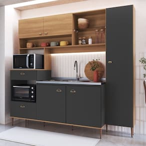 A Cozinha Compacta Karina vem para abrilhantar seu ambiente. Com 6 portas com dobradiças com amortecimento, 1 gaveta com corrediças telescópicas, espaço para forno e microondas e amplo espaço de balcão e paneleiro, acomoda todos os itens da cozinha. Ainda possui nichos para decoração, prateleira de vidro, pés com regulagem de altura, puxadores elegantes e modernos, que deixarão sua cozinha linda. E tudo isso, sem precisar furar a parede para fixar. Produzida toda em chapa de 15mm, revestida com perfect, garante qualidade e durabilidade no seu produto. Acabamento da Prateleira: Finish Foil Escala de Brilho da Prateleira: Fosco Acabamento da Gaveta: Finish Foil Escala de Brilho da Gaveta: Fosco Material do Puxador da Gaveta: PVC Acabamento da Porta: Finish Foil Escala de Brilho da Porta: Fosco Material do Puxador da Porta: PVC Acabamento dos Pés: Poliéster Acompanha Rodapé Decorativo: Não Acompanha Tampo: Não Altura dos Pés: 17 cm Ambiente Principal: Cozinha Balcão Suporta Pia: Sim codigo_ean: 7900288075192 Complexidade da Montagem: Alta: deve ser montado por um montador especializado Cor: Marrom/Cinza Cor do Produto: Marrom/Cinza Escala de Brilho: Fosco Espessura do Material da Estrutura: 15 mm Gaveta com Chave: Não Itens Inclusos: 1 Cozinha Compacta, 1 Manual de montagem Linha ou Coleção: Karina Manual de Montagem e Instalação: https://product-hub-prd.madeiramadeira.com.br/979422/documents/7e938cf4-b0dd-4b55-9c13-fa67e30883c02711130526117404261578925.pdf Marca: Delmarco Móveis Material da Corrediça: Alumínio Material da Dobradiça/Corrediça da Porta: Alumínio Material da Gaveta: MDP Material da Porta: MDP Material da Prateleira: MDP Material dos Pés: PVC modular: Não Montagem Flex: NÃO Necessita Montagem: Sim O Balcão Acompanha Pia: Não Origem do Produto: Nacional Pés Reguláveis: Sim Peso: 97,05 kg Peso Máximo por Gaveta: 3 kg Peso Máximo por Prateleira: 5 kg Possui Pés: 09 Possui Portas: Sim Possui Prateleiras: Sim Possui recorte para Cooktop: Não Possui Rodízio: Não Possui Vidro: Sim Produto Montado: Sim Recomendações de Uso, Manutenção e Limpeza: Pano umedecido Sapatas Niveladoras: Não Sistema de Montagem: Parafusos, Cavilha e minifix Tamanho Indicado da Pia: 120 X 51 Tamanho Indicado do Tampo: 120 x 51 Tamanho Indicado do Tampo ou Pia: 120 x 51 Tipo de Corrediça da Gaveta: Metálica Telescópica Tipo de Dobradiça da Porta: Soft close Tipo de Puxador da Gaveta: Externo Tipo de Puxador da Porta: Externo