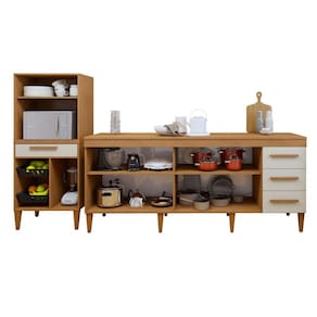 O(a) Cozinha Compacta Cuiaba 5 Portas 4 Gavetas Natural - Kaiki Móveis é produzido em MDP na escala de brilho Fosco, e possui um grau de dificuldade de montagem: Médio.