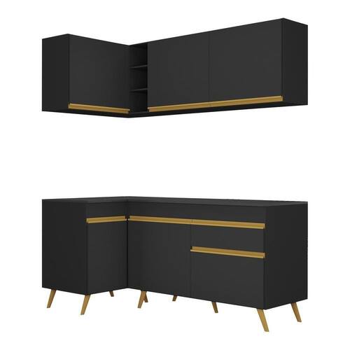 Cozinha Compacta De Canto Veneza Gb Multimóveis Mp2057 Com Armário E Balcão Preta