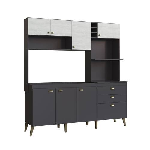 Composta por 8 portas, 2 gavetas, 2 prateleiras e nichos estrat?gicos, a Cozinha Donna proporciona excelente aproveitamento de espa?o. Sua estrutura em MDP com revestimento em impress?o UV garante resist?ncia e durabilidade, enquanto os puxadores em ABS e os p?s com alturas diferenciadas completam o visual com um toque retr? sofisticado.