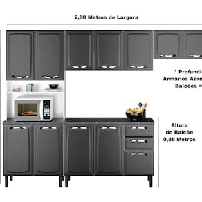 A Cozinha em Aço da Linha New Premium é perfeita para quem deseja montar uma cozinha moderna e elegante. Além disso, os módulos da cozinha foram desenvolvidos para proporcionar qualidade e resistência, tem amplo espaço e seu tampo em madeira com acabamento em BP resiste a temperaturas de até 120 °C, puxadores em ABS com acabamento metalizado onix, Pés com regulagem de altura. A cozinha New Premium da Itatiaia dá um toque de elegância e modernidade à decoração da sua casa com seu refino e espaço, Paneleiro Duplo com Nicho para Forno com muito mais espaço. Acabamento da Prateleira: Pintura Escala de Brilho da Prateleira: Semi-Brilho Acabamento da Gaveta: Pintura Escala de Brilho da Gaveta: Fosco Material do Puxador da Gaveta: ABS Acabamento da Porta: Pintura Escala de Brilho da Porta: Fosco Material do Puxador da Porta: ABS Acabamento dos Pés: Polipropileno Acompanha Tampo: Sim Altura dos Pés: 16 cm Ambiente Principal: Cozinha Balcão Suporta Pia: Não codigo_ean: 7900288132901 Complexidade da Montagem: Alta: deve ser montado por um montador especializado Cor: Grafite Cor do Produto: Grafite Cor Interna: Branco Escala de Brilho: Fosco Gaveta com Chave: Não Itens Inclusos: 1 Cozinha, Kit Ferragens e Manual de Montagem Linha ou Coleção: New Premium - Itatiaia Manual de Especificação Técnica: https://cdn2.madeiramadeira.com.br/atributo/itatiaia-aco/2877188-2679-17455242136336.pdf Manual de Montagem e Instalação: https://cdn2.madeiramadeira.com.br/atributo/itatiaia-aco/2877187-2679-17455242097812.pdf Marca: Itatiaia Material da Corrediça: Metálica Material da Dobradiça/Corrediça da Porta: Metálica Material da Gaveta: Aço Material da Porta: Aço Material da Prateleira: Aço Material do Fundo: Aço Material do Tampo: MDP Material dos Pés: Polipropileno Medida de cada item (A x L x P): 1 Paneleiro Fno (210x80x30cm), 1 Armário 120 (55x120x30cm), 1 Armário 80 (40x80x30cm) 1 Balcão (88x120x52) modular: Sim Necessita Montagem: Sim O Balcão Acompanha Pia: Não Origem do Produto: Nacional Pés Reguláveis: Sim Peso: 86,26 kg Peso Máximo por Gaveta: 3 kg Peso Máximo por Prateleira: 10 kg Possui Pés: 08 Possui Portas: Sim Possui Prateleiras: Sim Possui recorte para Cooktop: Não Possui Rodízio: Não Possui Vidro: Não Recomendações de Uso, Manutenção e Limpeza: Limpeza com pano umedecido. Sapatas Niveladoras: Sim Sistema de Montagem: Pafusos e porcas Suporta Até (kg): 130 kg Tamanho Indicado da Pia: 120x52 Tipo de Corrediça da Gaveta: Metálica Telescópica Tipo de Dobradiça da Porta: Simples Tipo de Puxador da Gaveta: Externo Tipo de Puxador da Porta: Externo