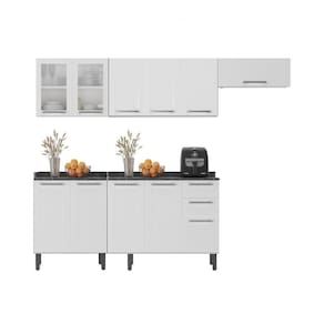 A Cozinha em Aço da Linha Frorença é perfeita para quem deseja montar uma cozinha moderna e elegante. Além disso, os módulos da cozinha foram desenvolvidos para proporcionar qualidade e resistência, tem amplo espaço e seu tampo em madeira com acabemento em BP resiste a temperaturas de até 120 °C, puxadores em ABS com acabamento metalizado onix, Pés com regulagem de altura. A Cozinha Florença da Itatiaia dá um toque de elegância e modernidade à decoração da sua casa com seu refino e espaço. Altura do produto vai depender da forma que ele for montado. Acabamento da Prateleira: Pintura Escala de Brilho da Prateleira: Semi-Brilho Acabamento da Gaveta: Pintura Escala de Brilho da Gaveta: Semi-Brilho Material do Puxador da Gaveta: ABS Acabamento da Porta: Pintura Escala de Brilho da Porta: Semi-Brilho Material do Puxador da Porta: ABS Acabamento dos Pés: Polipropileno Acompanha Rodapé Decorativo: Não Acompanha Tampo: Sim Altura dos Pés: 16 cm Altura Máxima dos Pés: 16.0000 Ambiente Principal: Cozinha Balcão Suporta Pia: Não codigo_ean: 7900288050649 Complexidade da Montagem: Alta: deve ser montado por um montador especializado Cor: Branco Neve Cor do Produto: Branco Neve Cor Interna: Branco Escala de Brilho: Semi-Brilho Gaveta com Chave: Não Itens Inclusos: 3 Armário + 2 Balcão Linha ou Coleção: Florença Manual de Montagem e Instalação: https://product-hub-prd.madeiramadeira.com.br/975586/documents/4876d80f-c232-4cbe-82ba-c4eb531090f32648043267917377286243901.pdf Marca: Itatiaia Material da Dobradiça/Corrediça da Porta: Metálica Material da Gaveta: Aço Material da Porta: Aço Material da Prateleira: Aço Material do Fundo: Aço Material do Tampo: MDP Material dos Pés: Polipropileno Medida de cada item (A x L x P): 1 Armário (55x70x28cm), 1 Armário 105 (55x105x28cm), 1 Armário 70 (26x70x28cm) 1 Balcão (92x105x45) 1 Balcão (92x70x45) modular: Não Necessita Montagem: Sim O Balcão Acompanha Pia: Não Origem do Produto: Nacional Pés Reguláveis: Sim Peso: 60,42 kg Peso Máximo por Gaveta: 3 kg Peso Máximo por Prateleira: 10 kg Possui Pés: 08 Possui Portas: Sim Possui Prateleiras: Sim Possui recorte para Cooktop: Não Possui Rodízio: Não Possui Vidro: Sim Produto Montado: Sim Recomendações de Uso, Manutenção e Limpeza: Limpeza com pano umedecido. Sapatas Niveladoras: Sim Sistema de Montagem: Pafusos e porcas Suporta Até (kg): 140 kg Tamanho Indicado da Pia: 105x45cm Tipo de Corrediça da Gaveta: Metálica Telescópica Tipo de Dobradiça da Porta: Simples Tipo de Puxador da Gaveta: Externo Tipo de Puxador da Porta: Externo