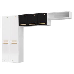 Apresentamos a Cozinha Compacta em L Diamante Smart com 7 Portas 818409 Telasul, A Cozinha Diamante e a escolha ideal para quem busca durabilidade, praticidade e beleza na organizacao do ambiente. Composta por tres modulos robustos de aco, com pintura eletrostatica e acabamento brilhoso, oferece protecao anticorrosiva e resistencia. Seus espacos internos eficientes acomodam utensilios, panelas, loucas, travessas e alimentos de forma organizada. O Paneleiro e o Armario aereo organizam panelas, eletrodomesticos e mantimentos. O Nicho e ideal para o espaco acima da geladeira, acomodando utensilios ou objetos decorativos. Com linhas icais nas portas, aplique em alto relevo de diamante e puxadores dourados, a Cozinha Diamante traz um toque de elegancia e brilho ao ambiente.