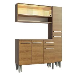 - Itens inclusos: Um Armário aéreo com duas portas de correr de vidro reflex e um nicho | Um Paneleiro com duas portas | Um Balcão com três portas, uma gaveta e tampo