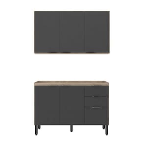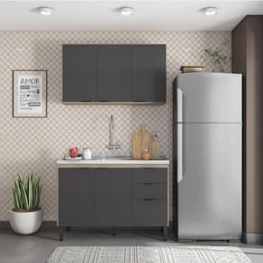 Cozinha Compacta Firenze 02 Peças 06 Portas 02 Gavetas Demóbile Avena Touch/Grafito - Cinza