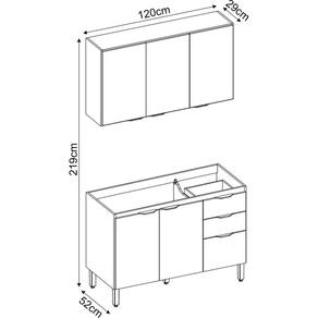 Medida de cada item (A x L x P): Armário Aéreo 67 x 120 x 29 / Balcão para pia 84 x 120 x 52