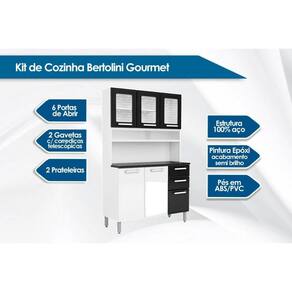 Kit de Cozinha Compacta Gourmet c/ 6 Portas (3 c/ Vidro) e 2 Gavetas 120cm Preto - Bertolini