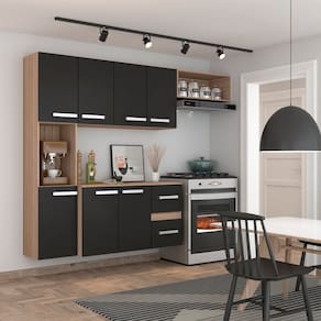- Espessura da Estrutura: 12 mm - Possui Gavetas?: Sim - Quantidade de Gavetas: 2 - Peso Suportado nas Gavetas (Kg): 2 Kg - Material das Corrediças: Metálica - Tipo da Corrediça: Convencional - Possui Portas?: Sim - Quantidade de Portas: 7 - Material da Porta: MDP - Espessura da Porta: 12 mm - Tipo de Porta: Portas de Bater - Material das Dobradiças: Metálica - Possui Vidro?: Não - Possui Espelho?: Não - Possui Prateleiras?: Não - Possui Puxadores?: Sim - Material do Puxador: Plástico - Possui Ripamento?: Não - Linha ou Coleção: Gourmet - Montagem Invertida?: Não Pode ser Montado Invertido - "cor" interna: Marrom - É frágil?: Sim - Possui distanciador de corrediça?: Não - Possui Nicho?: Não - Acompanha Tampo para Cooktop: Não - Material da Estrutura: MDP - Tampo ''Cooktop'': Não Apresenta Furação/Marcação para Cooktop - Escala de Brilho: Fosco - Material do Tampo: MDP - Acompanha Tampo para Pia?: Não - Espessura do Tampo (mm): 15 - Possui Espaço para Pia?: Não - Possui Rodízios?: Não - Acompanha Pia?: Não - Possui Sapatas?: Não - Possui Pés?: Não - Pés com regulagem de altura?: Não - Possui Borda de PVC nas Bordas?: Não - Acompanha Tampo: Sim - Espaço Para Forno: Não - Espaço Para Micro-ondas: Não - Possui Espelho: Não - Possui Vidro: Não - Cozinha Suspensa: Sim - Tipo de Móveis de Cozinha: Armário - Acompanha: Kit Ferragem + Manual - Acompanha Manual de Montagem: Sim - Como os Móveis Chegarão na Minha Casa: Desmontados, bem embalados, acompanhando todas as peças e manuais necessários para montagem. - Grau de Dificuldade da Montagem: Fácil - Necessita de Montagem: Sim - Sistema de Montagem: Parafusos e cavilhas. - Garantia (dias): 90 - Indicação de Uso: Cozinha - Observação: Pode ser utilizada com geladeira no lugar do fogão de até 65 cm. Objetos decorativos que aparecem nas imagens, não acompanham o produto. - Recomendação de Manutenção: Pano seco ou umedecido, não utilizar quaisquer produtos abrasivos. - Revestimento /Acabamento: Pintura UV