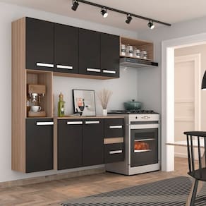 O(a) Cozinha Compacta 7 Portas 2 Gavetas Suspensa Armário e Balcão Anita Teka/Grafite - Pnr Móveis é produzido em MDP, e possui um grau de dificuldade de montagem: Médio.
