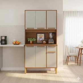 Cozinha Compacta Indekes Lagos 6 Portas 1 Gaveta MDP - 90,6cm de Largura - Freijó/Off White
