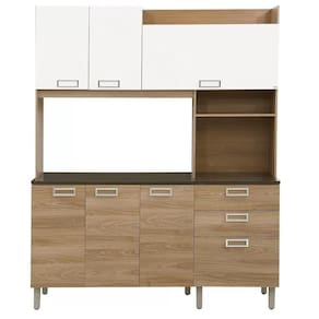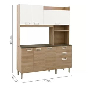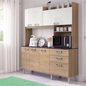 Esta super cozinha foi pensada especialmente para ambientes menores, onde a regra é aproveitar cada espaço com máxima eficiência e valorizar sua casa ao trazer praticidade e leveza para o seu dia a dia. A combinação das cores com as funcionais gavetas e portas fazem deste conjunto especial. São três portas aéreas, quatro no balcão e duas gavetas para organizar sua cozinha, além de espaço para micro-ondas e outros objetos, inclusive de decoração ou até mesmo outros eletrodomésticos. É perfeita para deixar o ambiente moderno e aconchegante.