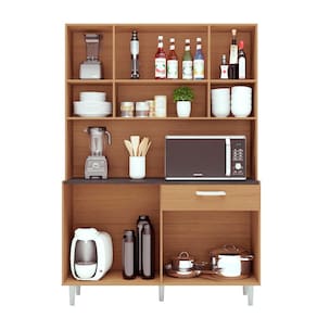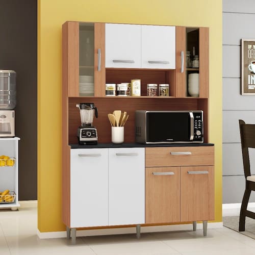 A Cozinha Compacta Kit Gabi 8 Portas 1 Gaveta Poliman é ideal para quem deseja praticidade e funcionalidade em qualquer ambiente. Com design compacto e uma excelente disposição interna, traz na sua composição 08 portas sendo 02 com vidro, 01 gaveta com corrediça metálica deslizante, espaço para micro-ondas ou demais aparelhos de utilidade doméstica, prateleiras e nicho organizador decorativo dando um charme especial à peça. Produto com pés reguláveis fabricado em MDP que garante a qualidade que só a Poliman oferece em seus produtos.