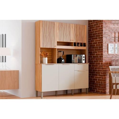 Cozinha Compacta Kit Moscato c/ 6 Portas e 1 Gaveta 197x151cm Amendoa/Off White - Ronipa - Blush