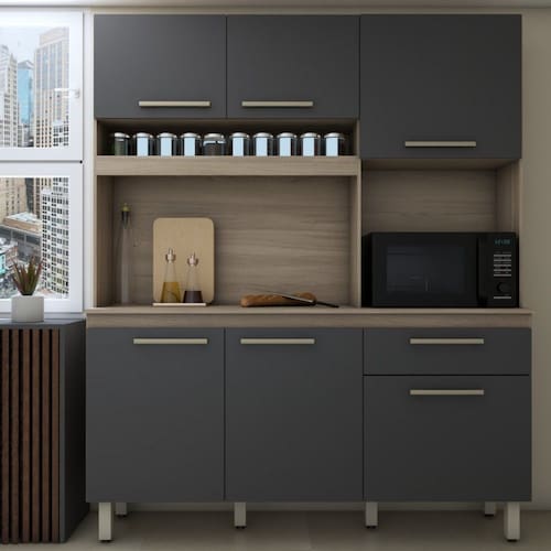 Cozinha Compacta Larissa 6 Portas 1 Gaveta Freijó/Grafite - Panorama Móveis - Cinza