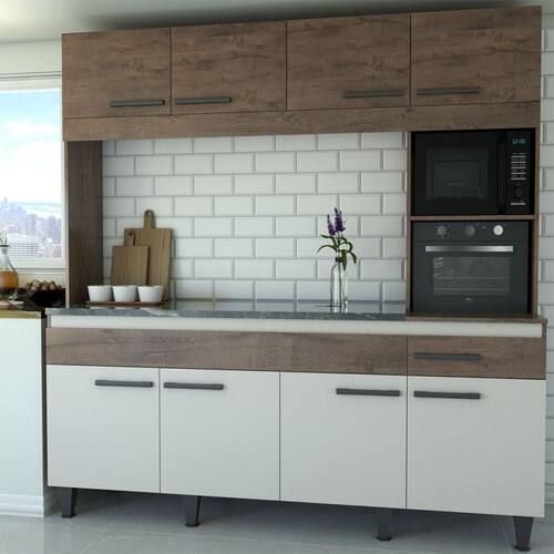 O(a) Cozinha Compacta Larissa 8 Portas 1 Gaveta Itaúba/Off White - Loja é produzido em MDP na escala de brilho Semi-Brilho, e possui um grau de dificuldade de montagem: Médio.