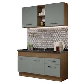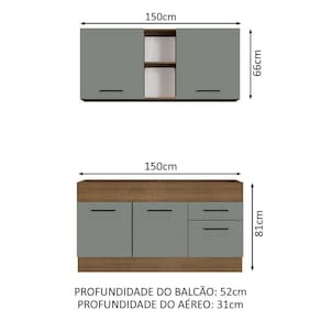Cozinha Compacta Madesa Agata 150002 com Armário e Balcão (Sem Tampo e Pia) - Rustic/Cinza