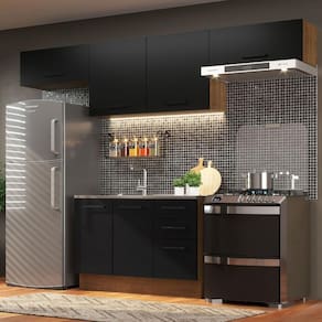 A linha de cozinhas Agata da Madesa se destaca por seu visual moderno e pela qualidade na construção. Neste modelo, a distribuição é pensada de forma inteligente, com ótimo aproveitamento de espaço, possibilitando o encaixe perfeito do fogão e da geladeira.