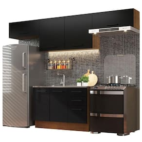 Itens inclusos: - Dois (2) Aéreos de 80 cm com uma (1) porta basculante - Um (1) Balcão de pia de 120 cm de largura com duas (2) portas e três (3) gavetas, sendo uma maior (Não acompanha tampo.) - Um (1) Armário Aéreo de 120 cm com duas (2) portas