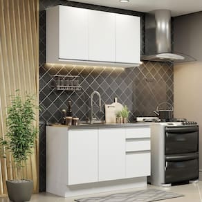 Precisando de uma cozinha compacta que otimize o espaço e caiba no seu ambiente pequeno? Confira esta opção da linha Glamy da Madesa.