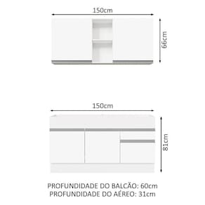- Um (1) Armário Aéreo de 150 cm com duas (2) portas e dois (2) nichos centrais