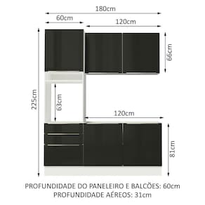 - 60 cm de profundidade nos módulos inferiores e 31 cm nos aéreos