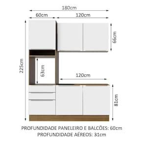 - 60 cm de profundidade no balcão e na torre e 31 cm no aéreo