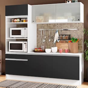 A Cozinha Compacta Topazio é uma cozinha moderna pensada nos mínimos detalhes. A cozinha é branca, no estilo americana, pequena e prática para o dia a dia. Seu aéreo em vidro agrega beleza e sofisticação.