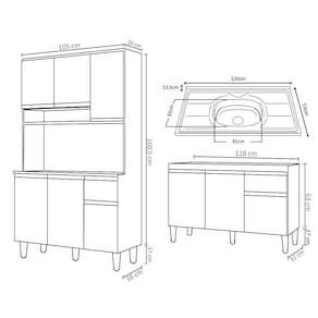 Conheça a Cozinha Compacta Márcia e Balcão Gabinete Com Pia Tatiane 120cm Branco, da AJL Móveis, ideal para você que está procurando uma cozinha compacta e funcional! O Kit de Cozinha pode ser montado de acordo com a sua necessidade, pois o balcão pode ser instalado na mesma parede ou separados. A Cozinha Compacta tem um ótimo acabamento, e combina com qualquer decoração. O balcão de 120cm suporta ou tampo e tem 5 pés niveladores. Já o armário tem um nicho menor para condimentos ou decorações e outro maior para eletroportáteis e outros itens, e seis portas para mantimentos, panelas ou potes. A Cozinha é feita de MDP de alta qualidade e tem puxadores em alumínio. As portas e gavetas têm dobradiças e corrediças metálicas, que garantem uma abertura e fechamento suaves. Ah! E este modelo acompanha pia inox 160cm com cuba e válvula. A cozinha tem um estilo moderno e um design funcional, que otimiza espaço. Coloque em seu carrinho de compras e garanta a sua! ESPECIFICAÇÕES Dimensões do Produto: (L x A x P)Balcão Gabinete: 118 x 80 x 51 cm. Armário: 105 x 177,5 x 38 cm. Pia: 120 x 13,5 x 53 cm. Peso: 91 Kg. **ACOMPANHA PIA. Características do ProdutoMaterial da Estrutura: MDP 15 mm. Material do fundo: MDF 3mm. Peso Suportado: 130 Kg distribuídos. Acabamento: Pintura UV. Escala de brilho: Fosco. Possui Tampo: Não. Possui Pia: Sim. Possui Portas: Sim. Material da Porta: MDP. Quantidade de Portas: 9 Portas. Tipo de dobradiças: Metálicas. Tipo de Porta: Convencional. Possui Gavetas: Sim. Material da Gaveta: MDP. Quantidade de Gavetas: 2 Gavetas. Tipo de corrediças: Metálicas. Possui Nichos: Sim. Quantidade de Nichos: 2 Nichos. Tipo de puxador: Alumínio. Possui Pés: Sim. Quantidade de Pés: 10 Pés. Tipo de Pés: Plástico com regulagem. Diferenciais:- Amplo espaço interno.- Puxadores em alumínio.- Design moderno.- Pés Reguláveis em PVC.Sistema de Montagem: Parafusos e Cavilhas. Manual de Montagem: Sim. Complexidade da Montagem: Alta. Conteúdo da Embalagem: 1 Armário, 1 Balcão, 1 Pia. Garantia do Fabricante: 90 dias contra defeitos de fabricação. Volumes: 4 Volumes. Montagem: Recomendamos que seja feita por um . Recomendação de Limpeza: Utilize pano levemente úmido. Observações importantes:- Produto para uso residencial em ambiente interno, não devendo ficar exposto diretamente ao sol, calor e umidades excessivas.- Pode haver alguma diferença de tonalidade entre a imagem e o produto real, por conta do tratamento de imagens e a calibração de cores do seu monitor.- As imagens são meramente ilustrativas, não acompanham objetos de decoração e eletrônicos.- Ao receber a mercadoria, o cliente deve verificar as condições da embalagem, caso haja alguma não assine o de .- Montagem, desmontagem e outras instalações serão de responsabilidade do cliente. Não nos responsabilizamos, no ato da , por subir escadas/elevadores ou pelo por guincho em apartamentos. Eventuais despesas são de responsabilidade do comprador.- Confira as dimensões do produto e certifique-se de que passará normalmente por supostos elevadores, portas, escadas e/ou corredores de sua residência.