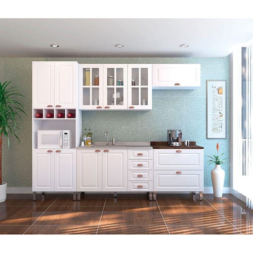Desenvolvido com materiais de altíssima qualidade, a Cozinha Modulada Compacta 5 Peças sem Tampo de 120 Branco Cristal Luciane Móveis oferece excelente distribuição de espaço interno.Dobradiças Slowmotion com amortecedor incorporado para fechamento suave das portas. Puxadores tipo concha PS Cobre. Corrediças telescópicas em três estágios que proporcionam a abertura total das gavetas. Pés com regulagem de altura.Características: Produzido em MDP 15mm Corpo/Caixaria: Frontais: MDFDobradiças: Metálicas Ø35mmCorrediças: TelescópicasPuxadores: Plástico CobreTampo em MDP 25mm e acabamento em BPCozinha Composta por:1-Armário Aéreo 120cm 3 Portas com Vidro Janelinha Cristal Luciane Móveis1-Armário Aéreo Basculante 80 cm 1 Porta Cristal Luciane Móveis1-Balcão de Cozinha sem Tampo 80cm 1 Porta Basculante e 1 Gavetão Cristal Luciane Móveis1-Balcão de Pia sem Tampo 120cm 2 Portas 4 Gavetas Cristal Luciane Móveis1-Paneleiro 70 cm com 1 Nicho Microondas 4 Portas Cristal Luciane Móveis1-Tampo 80cm em MDP com Acabamento BP Luciane MóveisBalcão de Pia sem Tampo 120cm 2 Portas 4 Gavetas Cristal Luciane MóveisDimensões do produto: Altura: 82,5 cm Largura: 120 cm Profundidade: 53 cm Peso: 59,8 kg Paneleiro 70 cm com 1 Nicho Microondas 4 Portas Cristal Luciane MóveisDimensões do produto: Altura: 220 cm Largura: 70 cm Profundidade: 53 cm Peso: 61,5 kg Balcão de Cozinha sem Tampo 80cm 1 Porta Basculante e 1 Gavetão Cristal Luciane MóveisDimensões do produto: Altura: 82,5 cm Largura: 80 cm Profundidade: 53 cm Peso: 29,75 kg Armário Aéreo Basculante 80 cm 1 Porta Cristal Luciane MóveisDimensões do produto: Altura: 37,5 cm Largura: 80 cm Profundidade: 36,5 cm Peso: 13,3 kg Tampo 80cm em MDP com Acabamento BP Luciane MóveisDimensões do produto:Altura: 2,5 cmLargura: 80 cmProfundidade: 54,5 cmPeso: 7,9kgArmário Aéreo 120cm 3 Portas com Vidro Janelinha Cristal Luciane MóveisDimensões do produto: Altura: 75 cm Largura: 120 cm Profundidade: 36,5 cm Peso: 30 kg Garantia de 3 meses direto do fabricante.Informações complementares:Fique de olho: siga sempre as orientações do fabricante e utilize seu produto de acordo com o manual. A empresa não se responsabiliza pelo mau uso do produto, o que pode causar perda da garantia.?Certifique se que seus dados estejam atualizados, como endereço e um telefone válido.A entrega será realizada no térreo, sendo assim em prédios o deslocamento da mercadoria, subir escadas, elevadores ou transporte por guincho para apartamentos fica sob responsabilidade do comprador.Todas as nossas entregas são realizadas em horário comercial, não sendo possível fazer agendamento, sugerimos acompanhar o rastreio do pedido e ter alguém para receber no endereço indicado.Não nos encarregamos por montagens, desmontagens e outras instalações, serão de responsabilidade do comprador.