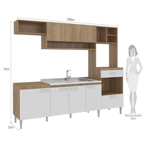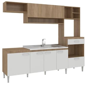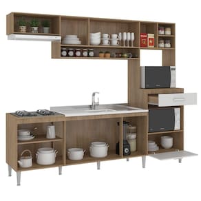Linda Cozinha Compacta Modulada INOVA de 8 portas em acabamento rústico e portas Brancas, com Balcão de 120cm para pia e 8 pés niveladores, aéreo de 120cm com nicho para condimentos, aéreo superior para depurador ou geladeira de 60cm e Paneleiro Lateral com gaveta para Fornos e balcão para cooktop até 4 bocas, porém o tampo não é recortado. Sua composição dos módulos pode mudar cfe necessidade do projeto de sua cozinha, pois o Paneleiro Lateral pode ser instalado no lado ESQUERDO ou DIREITO. Acompanha pés de 17cm com nivelamento de altura. Material revestido em MDP de alta densidade fosco. Modernos Puxadores em ABS Cromados de 16cm com verniz protetor E amplo espaço interno com prateleira para melhor acomodar seus utensílios Acabamento da Prateleira: Finish Foil Escala de Brilho da Prateleira: Semi-Brilho Acabamento da Gaveta: Finish Foil Escala de Brilho da Gaveta: Semi-Brilho Material do Puxador da Gaveta: MDP Acabamento da Porta: Finish Foil Escala de Brilho da Porta: Semi-Brilho Material do Puxador da Porta: MDP Acabamento: Finish Foil Acabamento dos Pés: Polipropileno Acompanha Tampo: Não Altura dos Pés: 17 cm Ambiente Principal: Cozinha Complexidade da Montagem: Baixa: pode ser montado por uma pessoa sozinha Cor: Carvalho/Branco Cor do Produto: Carvalho/Branco Cor Flex: Não Cor Interna: Carvalho Escala de Brilho: Semi-Brilho Gaveta com Chave: Não Informações Complementares: Pode ser montada ESQ ou DIR Itens Inclusos: 1 Cozinha Completa, Manual de Montagem e Kit Ferragens Linha ou Coleção: Inova Manual de Especificação Técnica: Manual de Montagem e Instalação: https://cdn2.madeiramadeira.com.br/atributo/fellicci/819251-cc120-cozinha-dir-esq-inova.pdf Material da Gaveta: MDP Material da Pia: Material da Porta: MDP Material da Prateleira: MDP Material do Fundo: MDF 3MM Material do Tampo: Material dos Pés: Plástico Medida de cada item (A x L x P): Medida do Recorte para Cooktop: Montagem Flex: Sim Necessita Montagem: Sim O Balcão Acompanha Pia: Não Origem do Produto: Nacional Pés Reguláveis: Sim Peso: 71,5 kg Peso Máximo por Gaveta: 2 kg Peso Máximo por Prateleira: 10 kg Possui Pés: 08 Possui Portas: 08 Possui Prateleiras: 01 Possui recorte para Cooktop: Não Possui Rodízio: Não Recomendações de Uso, Manutenção e Limpeza: Limpeza com pano levemente umidecido com água Rodízio com Trava: Sapatas Niveladoras: Sim Sistema de Montagem: Parafusos, Cavilhas, Pregos, Buchas Suporta Até (kg): 60 kg Tamanho: Tamanho Indicado da Pia: 120 x 52 Tamanho Indicado do Tampo: 120 x 52 Tipo de Corrediça da Gaveta: Metálica Simples Tipo de Dobradiça da Porta: Metálica Tipo de Madeira Maciça: Tipo de Madeira Maciça da Gaveta: Tipo de Madeira Maciça da Porta: Tipo de Madeira Maciça da Prateleira: Tipo de Madeira Maciça do Puxador da Gaveta: Tipo de Madeira Maciça do Puxador da Porta: Tipo de Madeira Maciça dos Pés: Tipo de Porta: Bater Tipo de Puxador da Gaveta: Externo Tipo de Puxador da Porta: Externo