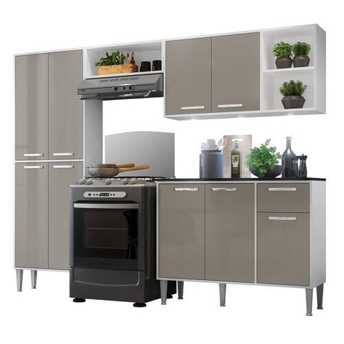 Cozinha Compacta Multimóveis Xangai FG3415 com 3 Leds Armário e Balcão Branca/Lacca Fumê - Branco