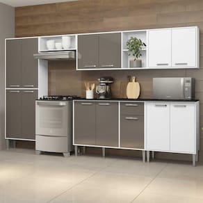 Produto Composto Por: 1 Nicho Horizontal, 1 Armário Aéreo de 105 Cm, 1 Paneleiro Duplo, 1 Balcão Com Tampo de 105 Cm, 1 Balcão Com Tampo de 70 Cm, 1 Armário Aéreo de 70 Cm, Manual de Montagem E. Kit Ferragem.