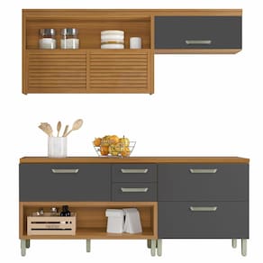 Cozinha Compacta Nesher Princesa com 4 Portas 3 Gavetas e 7 Prateleiras - 200cm de largura - Freijo/Grafite