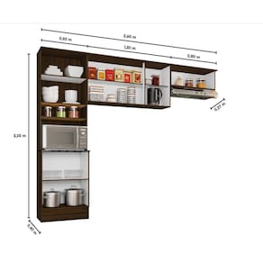 Observações: Os móveis serão entregues desmontados embalados e com manual de montagem. Montagem não está inclusa ao produto. Vendida separadamente Imagens meramente ilustrativas cores e tonalidades podem variar Os objetos que ambientam as fotos não acompanham o produto Na limpeza não utilizar produtos químicos e abrasivos, usar apenas com pano umedecido, para garantir a maior durabilidade do móvel. Antes de comprar o seu produto verifique as medidas, o local onde pretende instalar e se é necessário contratar o serviço de um profissional qualificado, já que nossa entrega não inclui a subida de lances de escada, elevadores ou o içamento de produtos para A Cozinha Compacta 6 portas Paris da Poliman Móveis é ideal para quem deseja elegância e praticidade na cozinha, produto com altura diferenciada e profundidade ideal. Composta por paneleiro duplo com prateleiras, nicho organizador decorativo e espaço para micro-ondas, além de contar com um amplo armário aéreo triplo e armário aéreo 1 porta basculante com pistão a gás para melhor aproveitamento de espaço que pode ser utilizado sobre geladeira ou sobre o fogão. Possui puxadores perfil em alumínio, pés reguláveis ao piso permitindo o nivelamento perfeito na montagem e rodapé que acompanha o produto com montagem opcional. Produto em MDP, disponível em padrões de cores que combinam com diversos ambientes. Qualidade que só a Poliman oferece em seus produtos.