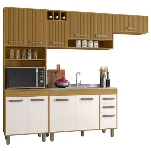 Cozinha Compacta Pia 120cm Emily Freijó/Ripado/Off Acetinado Z44 - Mpozenato