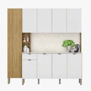 Durabilidade e Conforto, as dobradiças com amortecedor oferecem um fechamento suave das portas, prolongando a vida útil do móvel e proporcionando uma experiência de uso confortável. As corrediças telescópicas garantem acesso total ao conteúdo das gavetas, aliando durabilidade e praticidade no dia a dia.