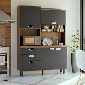 Que tal a Cozinha Compacta Ravena? Seu cômodo de chef vai ficar completo de verdade com a Cozinha Ravena. Dispondo de ótimo espaço de armazenamento, o kit acomoda todos os itens de uso diário, desde panelas maiores até talheres e pequenos utensílios - claro que também guarda os alimentos, deixando tudo organizado e prático para o dia a dia. Ah, como beleza não pode ficar de fora do seu cantinho, as peças se combinam e possuem um visual elegante que destaca a estrutura clássica e o acabamento amadeirado. Assim, além de ter uma cozinha organizada, você também ganha um lar-style bonito e sofisticado. Tudo de bom, não é? Marca: Modern