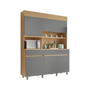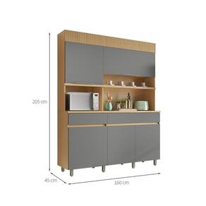 A Cozinha Realeza possui estrutura em MDF 15 mm e 18 mm, portas articuladas e basculantes com dobradiças metálicas slow motion, puxadores em alumínio e MDF, gavetas com corrediças telescópicas, pés metálicos, tampo em MDF 25 mm e acabamento semi brilhoVendido e entregue por MOBLY COMERCIO VAREJISTA LTDA.
