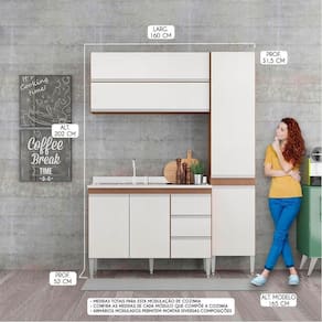 Dimensoes do Balcao para Pia de Cozinha Modulada Sabrina 120x88cm: